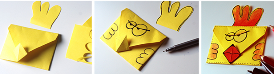 Как поэтапно сложить конверт с сюрпризом из листа бумаги А4, показано на видео: