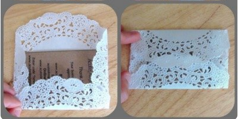 Собрать конверт можно даже из обычной ажурной салфетки.