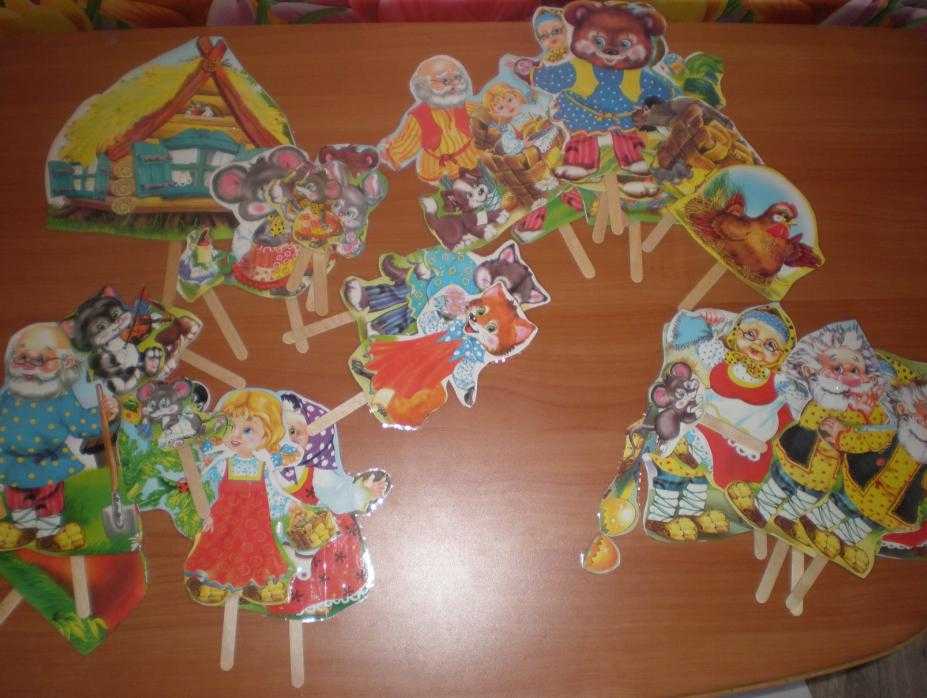Для самых маленьких театралов существуют целые готовые игровые наборы, в которых собраны все герои любимых детских сказок. Например, наборы фирм GOKI и Мир Деревянной Игрушки.