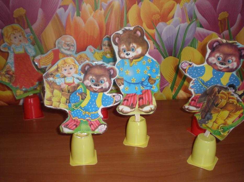 Персонажи выбранной сказки вырезаются из картона – они будут плоскими. Украсить их можно, сделав из ниток волосы, наклеив готовые глазки. Персонажи закрепляют в рамке, ее декорируют в духе сказки – наклеивают по боковым сторонам деревья, цветы, избушку.