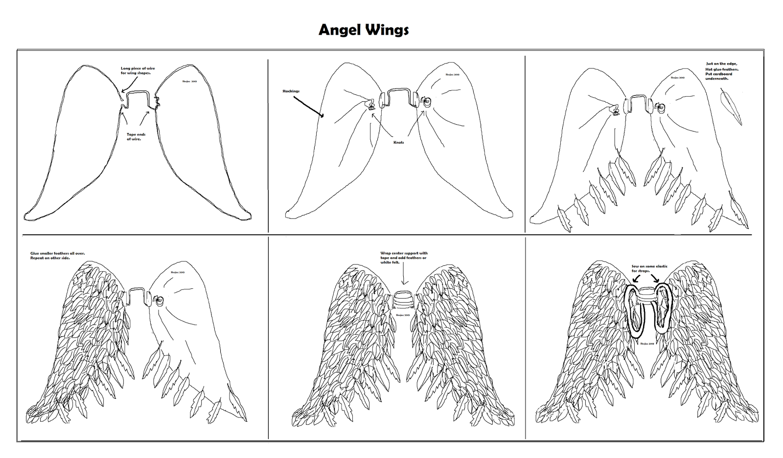 Представленная ниже схема поэтапного изготовления крыльев для ангела, послужит подсказкой и поможет сориентироваться.