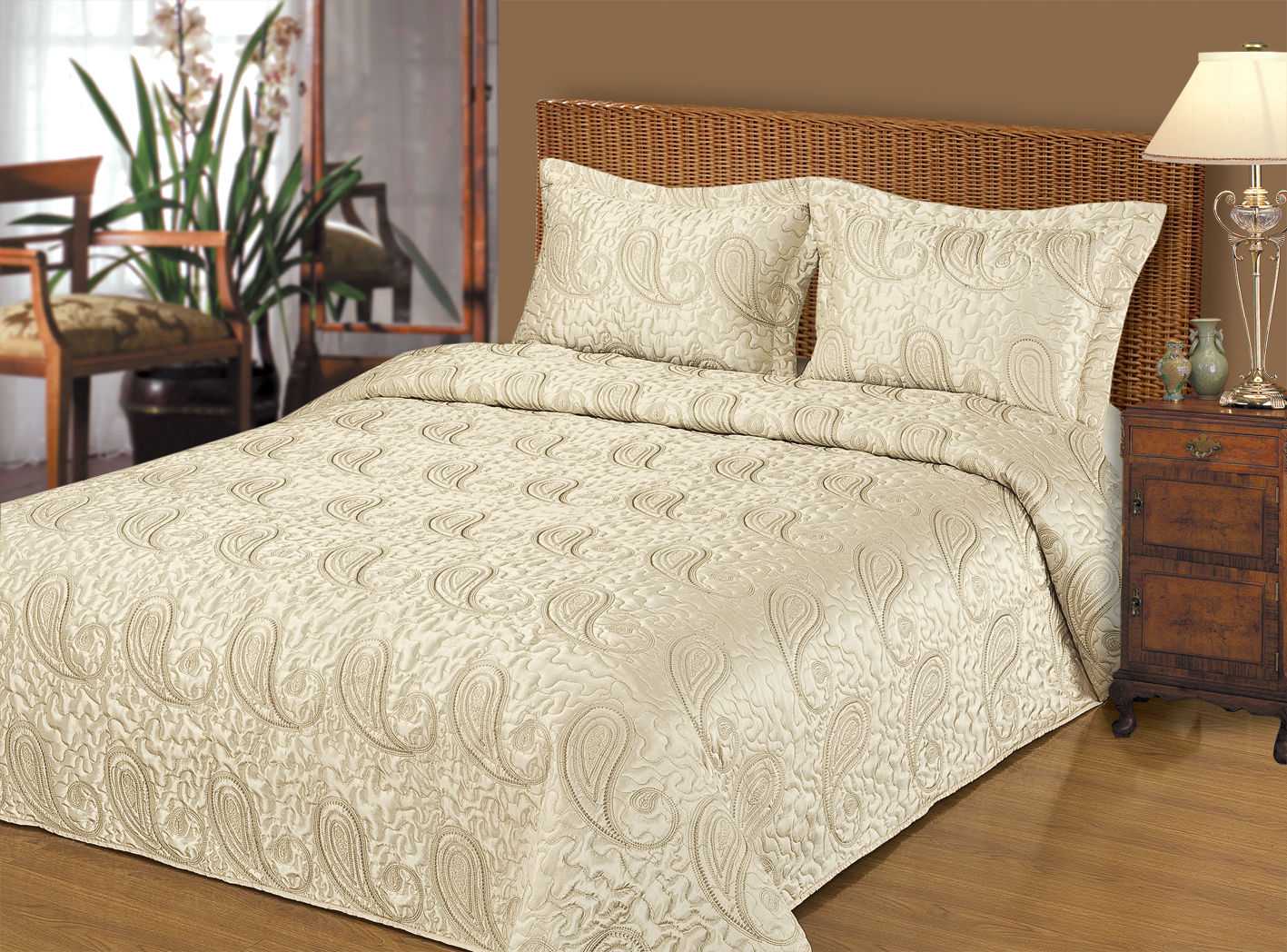 - Поверх одеяла помещается покрывало. Оно больших размеров, чем матрас и одеяло. Покрывало не свисает до пола. Оно равномерно расправляется, на нём нет складочек.