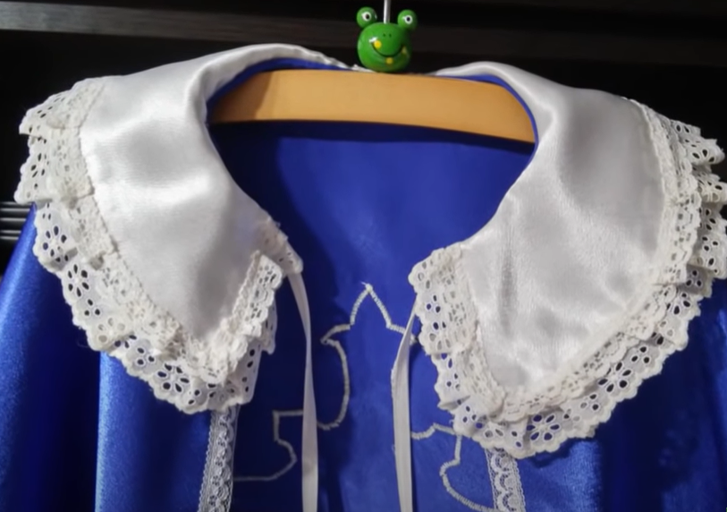- Пришить два готовых воротника к накидке, как показано на фото.