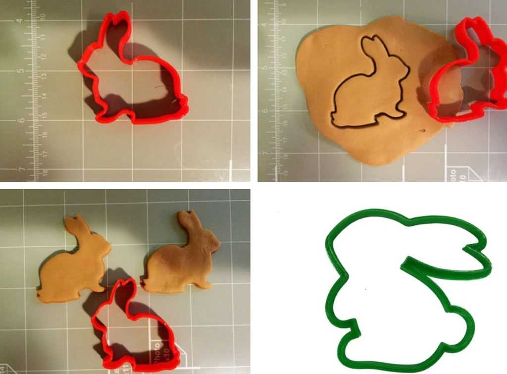 Для упрощения работы можно приобрести специальные вырубки в виде кролика. В продаже специализированных магазинов есть металлические или пластиковые формы, а также силиконовые 3D-модели для бисквитов и кексов.