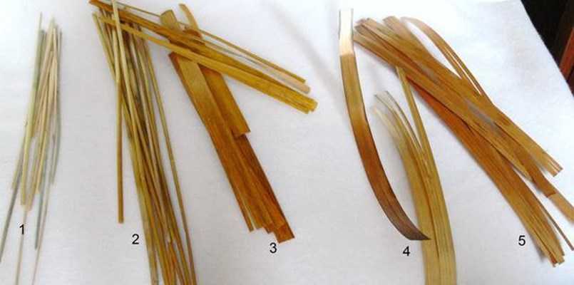 - Для плетения косичек необходимо выбирать соломинки одинаковой длины и толщины. Как правило, такая соломка заготавливается из средней части стебля. Если материала не хватает, а ленту нужно изготовить длинную, поступают следующим образом. Перед тем как приступить к плетению из соломки, стебли складывают разными концами, один — более толстой частью, другой — тонкой. Такая хитрость позволит выполнить изделие равномерно.