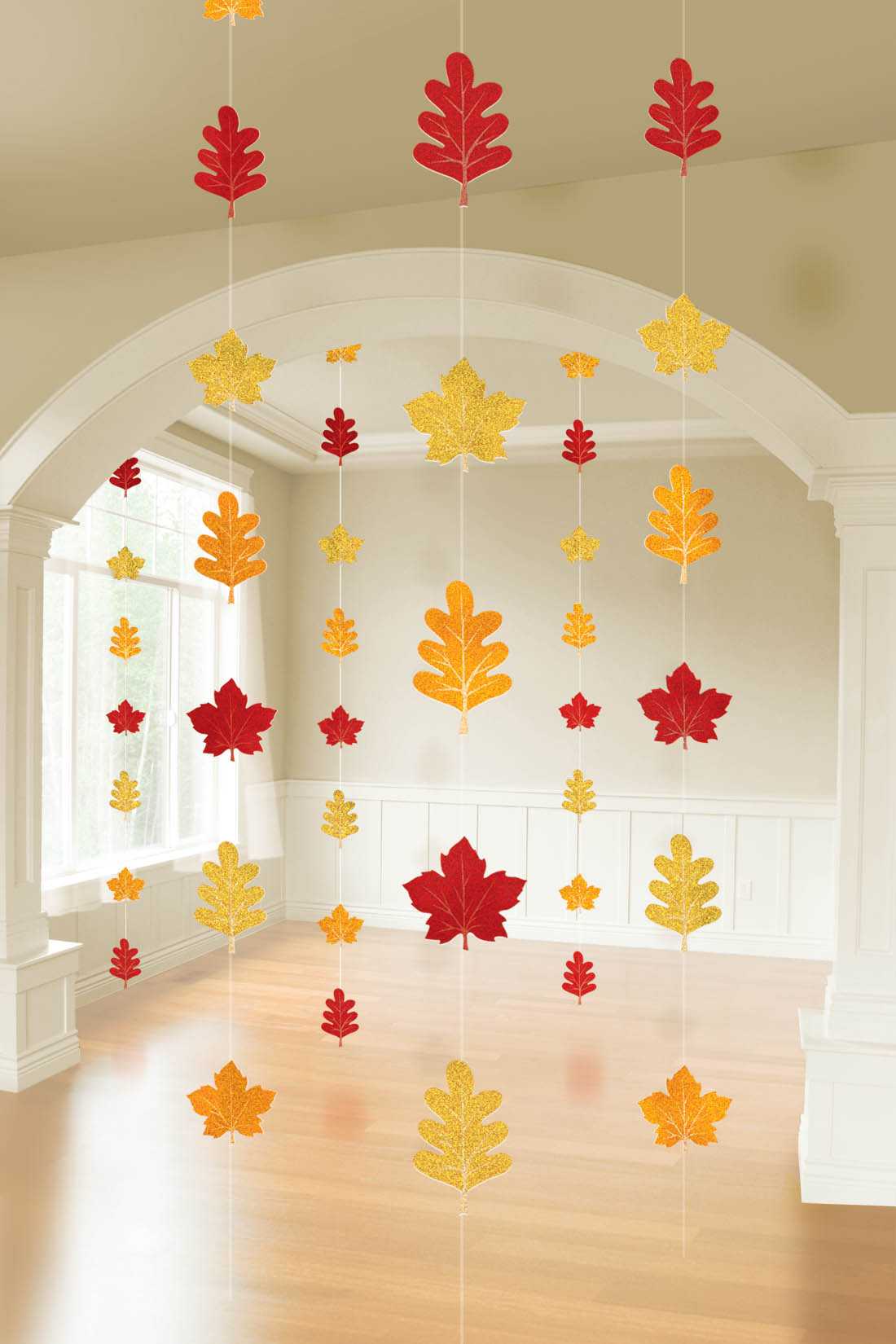 И, кстати, о стенах. Они ведь тоже требуют украшений. Если повесить осенние вертикально, получится отличная фотозона, где каждый желающий сможет сделать фото после праздника осени. Да и это просто очень красиво!