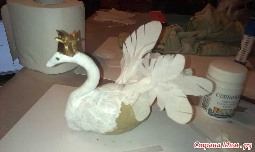 Главный атрибут белоснежной птицы – корона. Фигурки расставляют на картонке из-под обуви в окружении антуража или применяют метод «размазывания» на поверхности основания.
