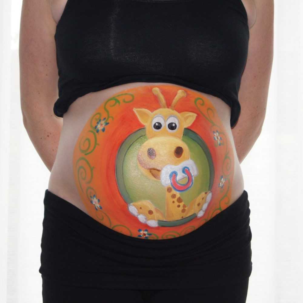 Если собственных художественных навыков недостаточно, или хочется увидеть на животе настоящую картину, можно обратиться к профессионалу, который обладает достаточным опытом и сумеет максимально точно передать на «холсте» идею рисунка. Это может быть как собственный набросок будущей мамы, так и готовая композиция, выбранная из портфолио художника.