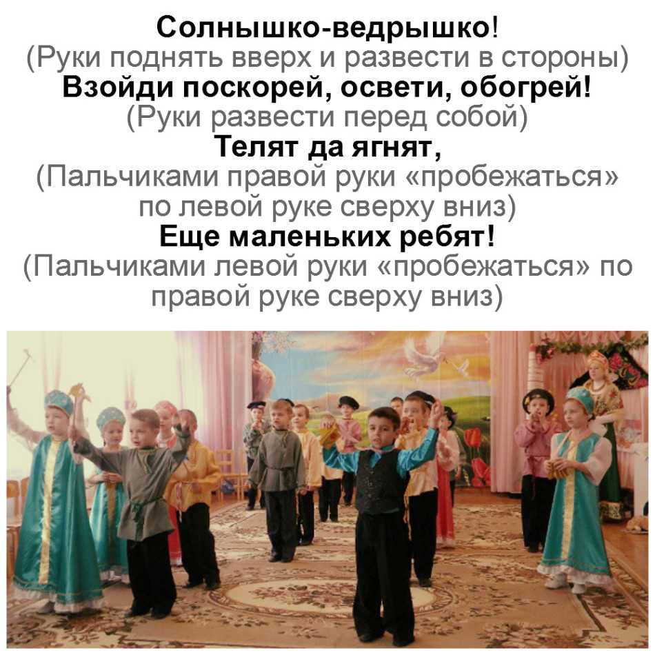 — Ой, Весна – Весна, добрая матушка! Ты иди в наши края, прогони Зиму лютую. Старая Зима не уходит, все Морозы кует, холод – стужу напускает.