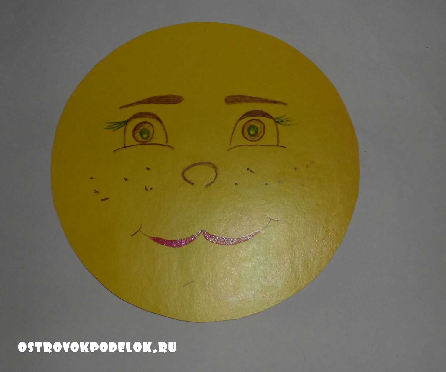 Вырезаем из картона круг и рисуем личико для нашего солнца.