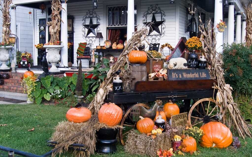 Изначальными атрибутами торжества были символы осени и урожая: тыквы, пожелтевшие листья, огородные пугала, спелая кукуруза, голые ветки деревьев.