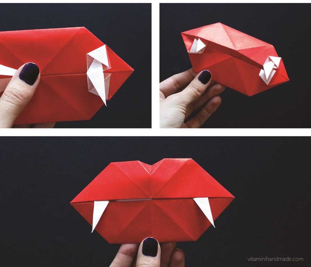 Чтобы изготовить эти губы оригами с вампирскими клыками, вам потребуется лишь квадратный лист бумаги и умелые ручки.