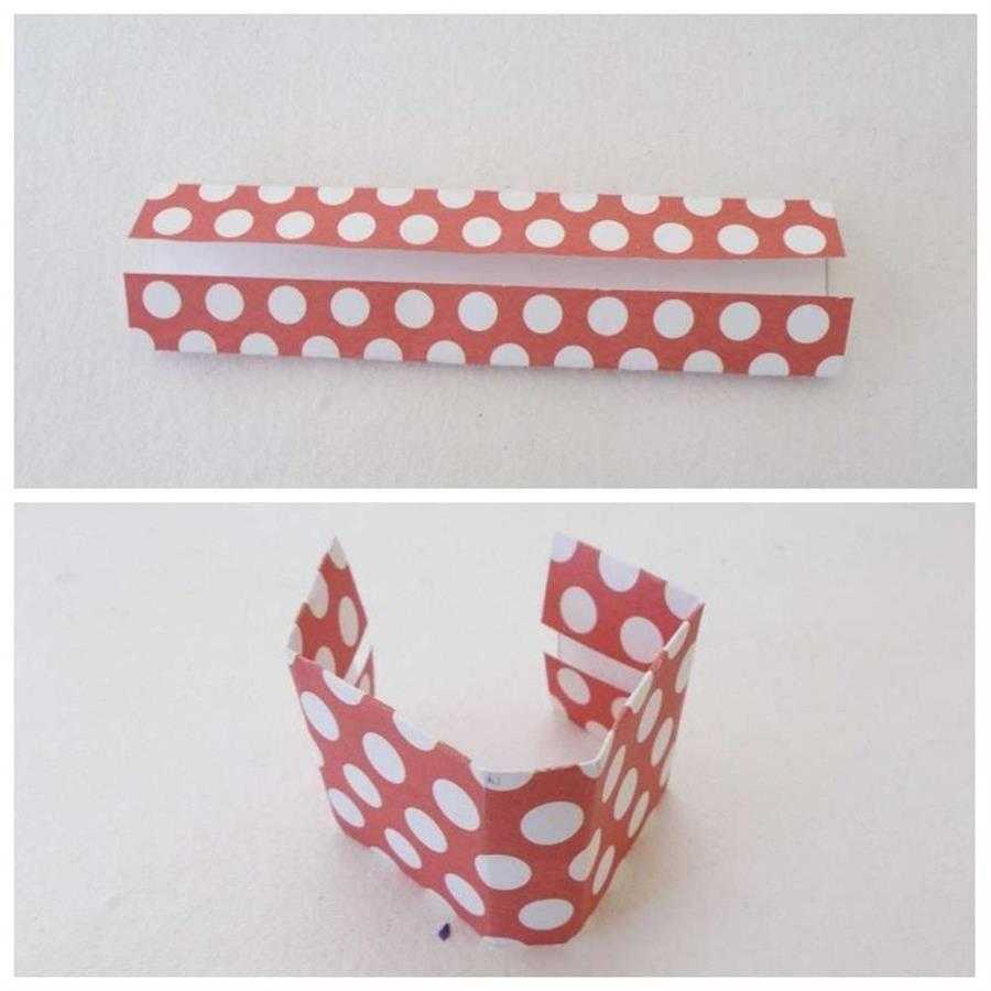 Ручку для корзинки выполняют из любого материала, способного держать форму: плотной бумаги, картона. Ее пришивают к коробочке или приклеивают, можно использовать клепку или канцелярскую кнопку, загнув острый кончик с внутренней стороны.