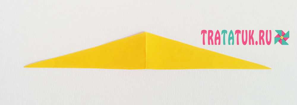 1. Взять раскрашенную или цветную бумагу в форме квадрата со стороной 15 см. Свернуть его по диагонали.