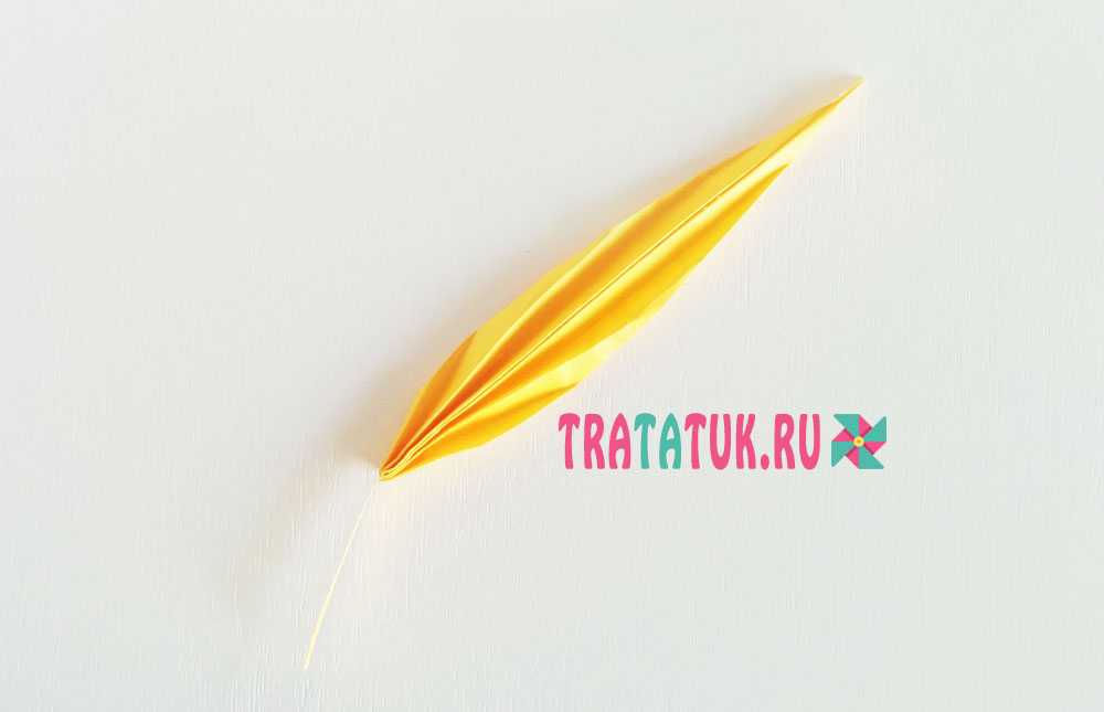 Чтобы сделать такой лист, нужна прямоугольная, довольно узкая полоса бумаги. Чем она уже, тем тоньше листик, хотя очень тонкий делать сложнее.