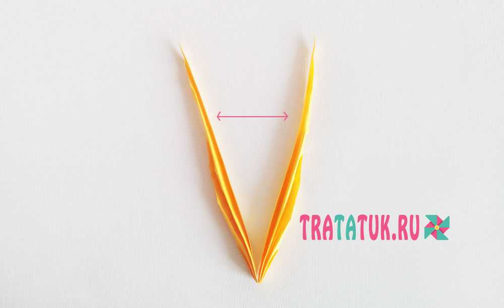 12. Склеить между собой нижние треугольники с верхними – черешка. Таким образом, заготовка получит развернутую форму. Места склеивания нужно надежно закрепить, придерживая пальцами несколько минут.