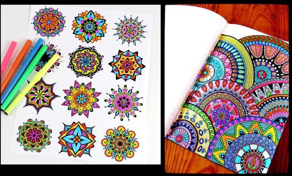 И поскольку антистресс раскраска с мандалой должна быть цветной, то вам подойдут любые разноцветные инструменты для творчества. Например:
