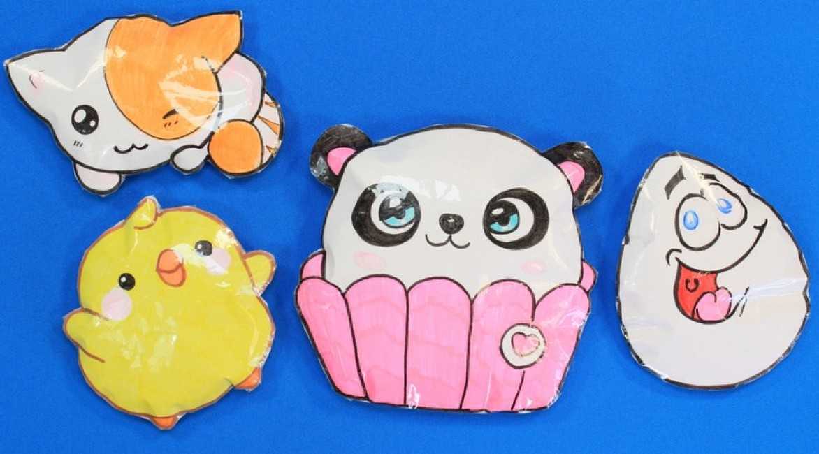 Если нужно понять, как сделать сквиши-брелок, то пригодится инструкция по изготовлению игрушки из обложки.