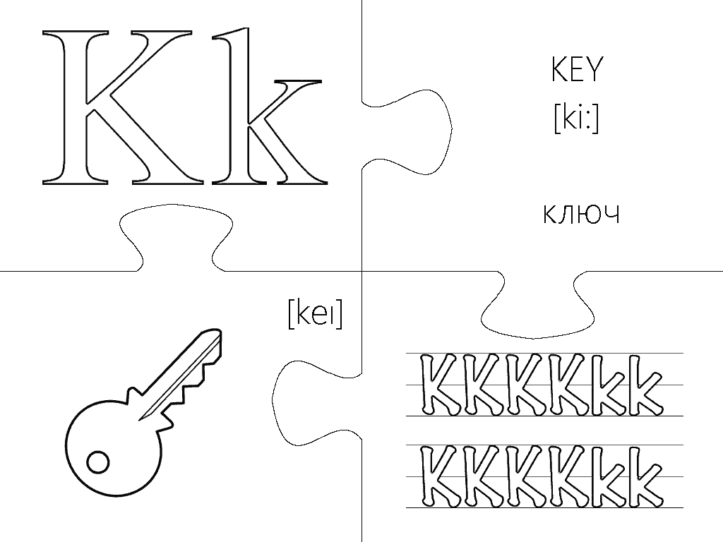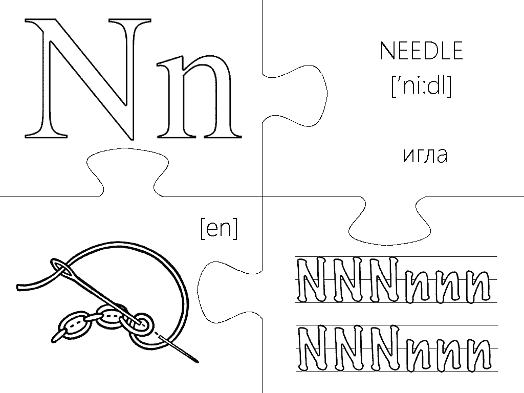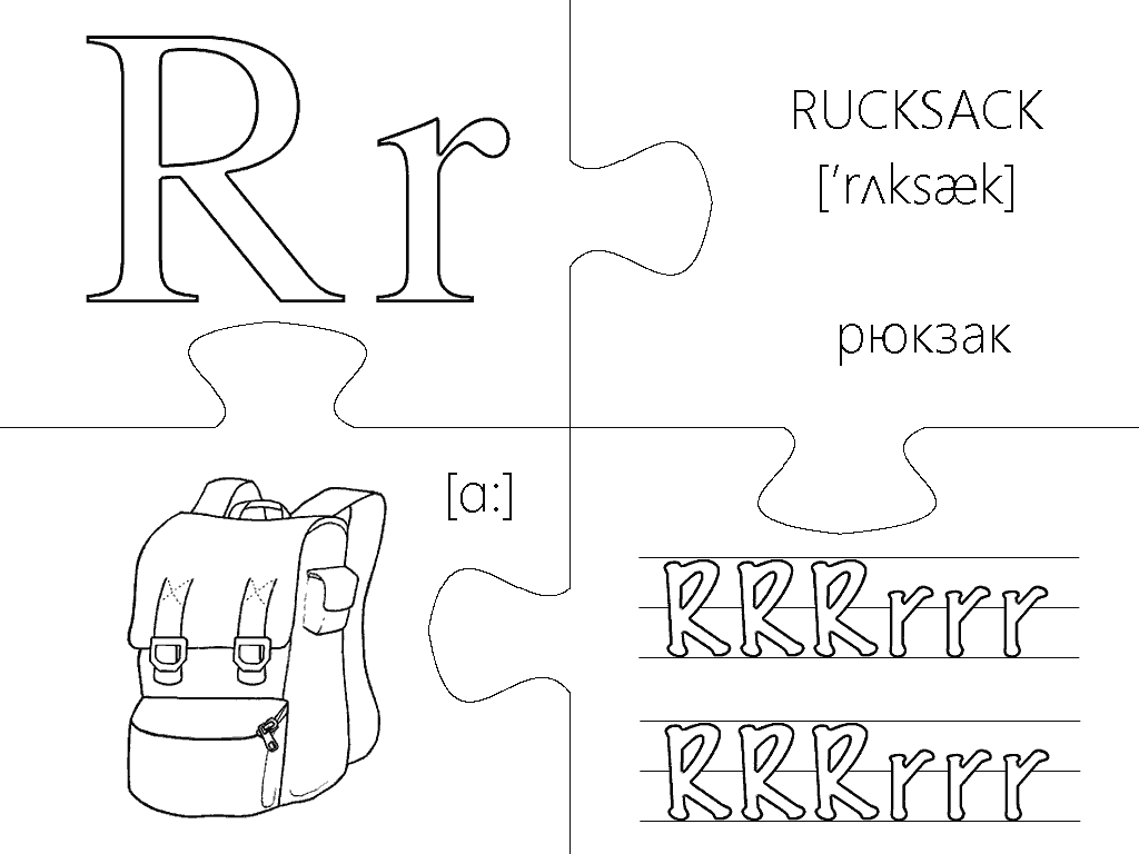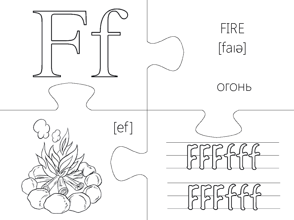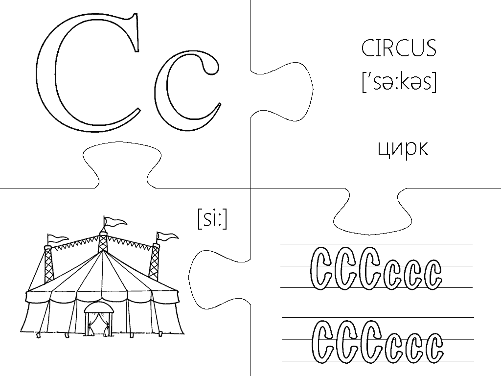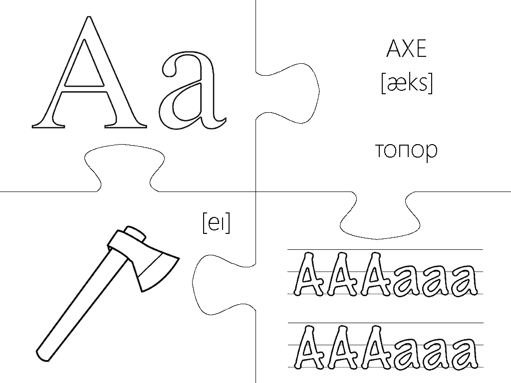 Еще одна версия пазлов, где каждая буква изображена в виде интересной раскраски и занимает целую страницу А4. Вырезание, разукрашивание и складывание всех элементов займет вашего малыша на несколько дней, что позволит хорошо отложить в памяти каждую букву английского алфавита. Пазлы будут полезны не только перед подготовкой ребенка к школе, но также для первоклассников и второклассников в учебных заведениях с углубленным изучением английского языка.