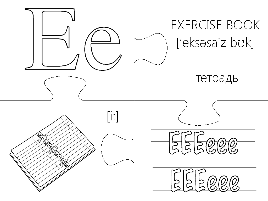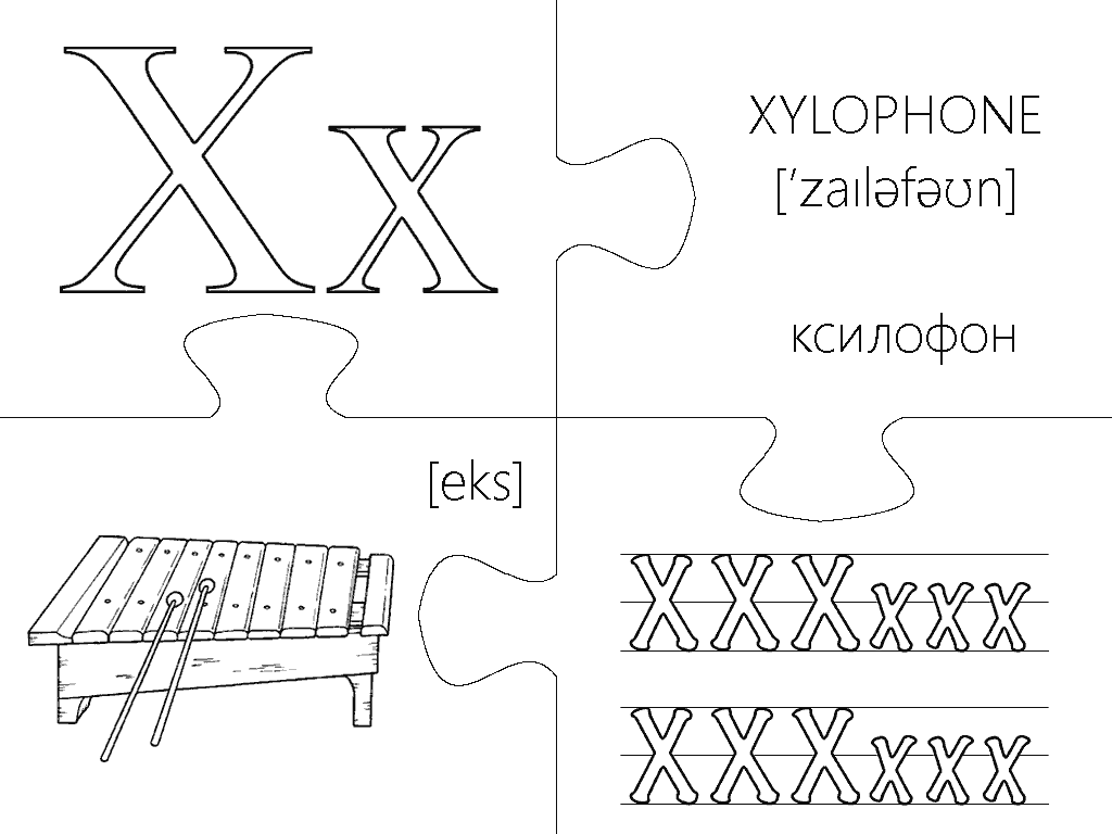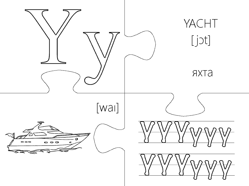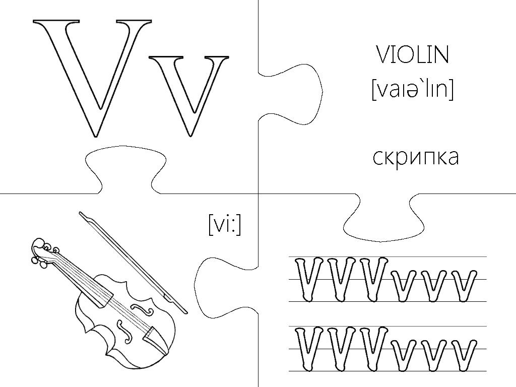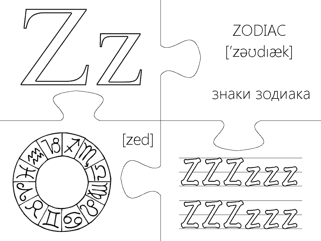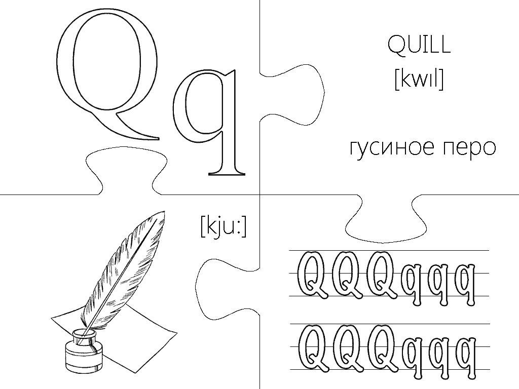 Еще одна версия пазлов, где каждая буква изображена в виде интересной раскраски и занимает целую страницу А4. Вырезание, разукрашивание и складывание всех элементов займет вашего малыша на несколько дней, что позволит хорошо отложить в памяти каждую букву английского алфавита. Пазлы будут полезны не только перед подготовкой ребенка к школе, но также для первоклассников и второклассников в учебных заведениях с углубленным изучением английского языка.