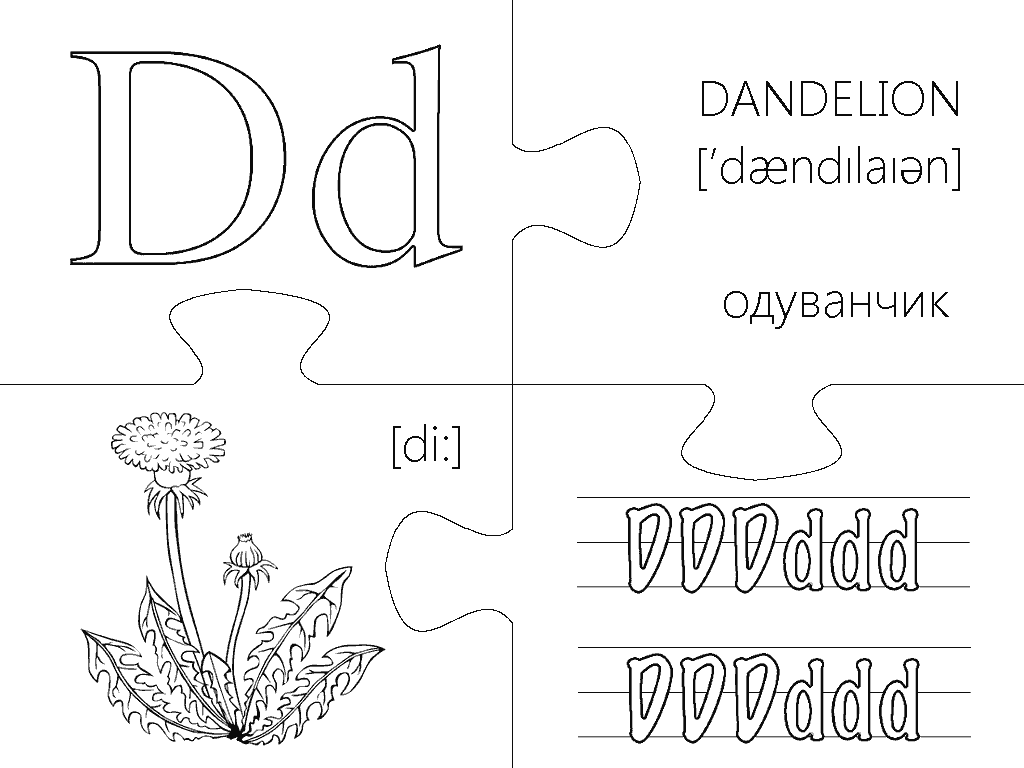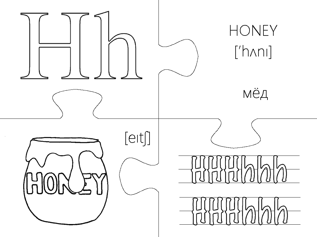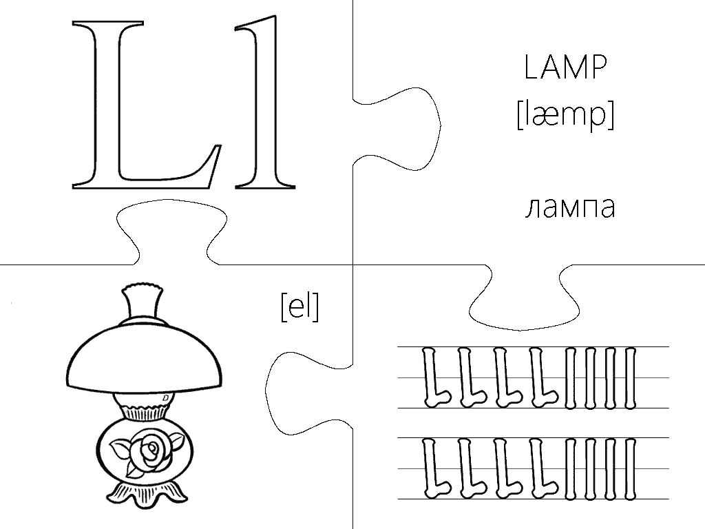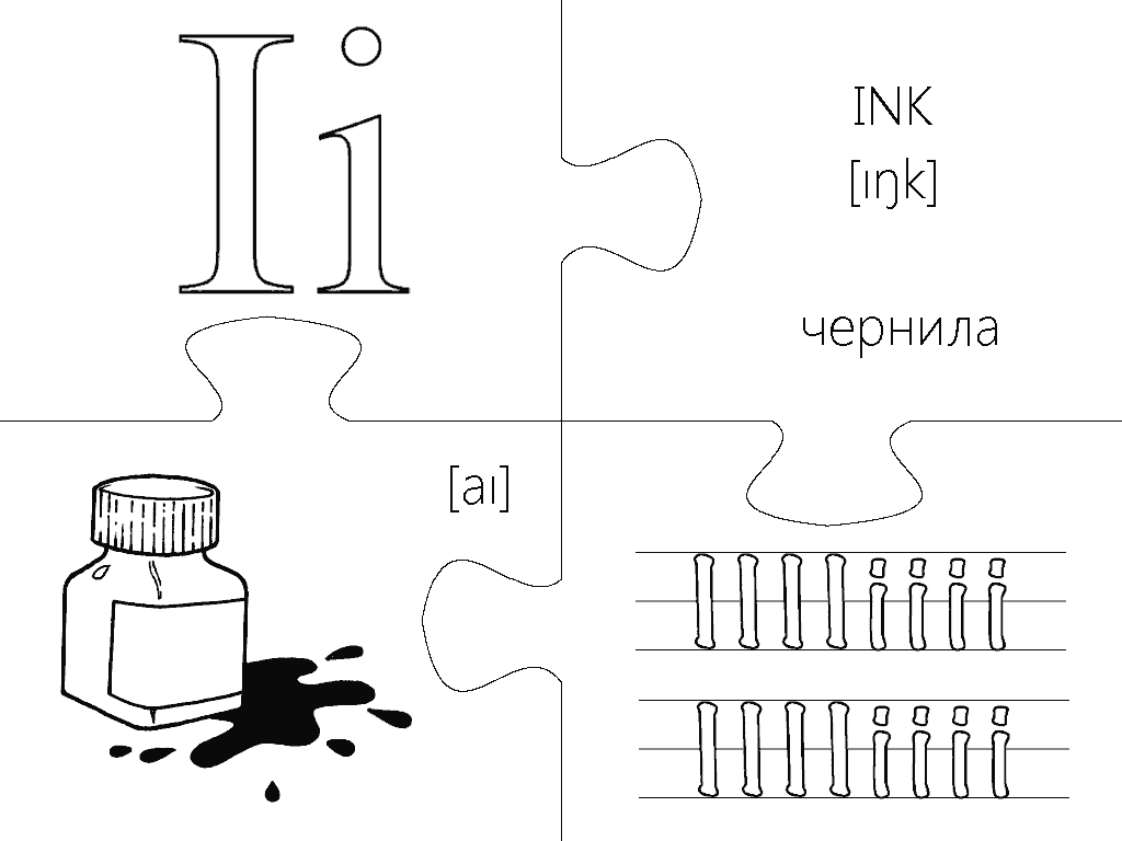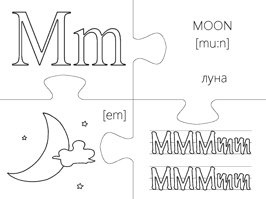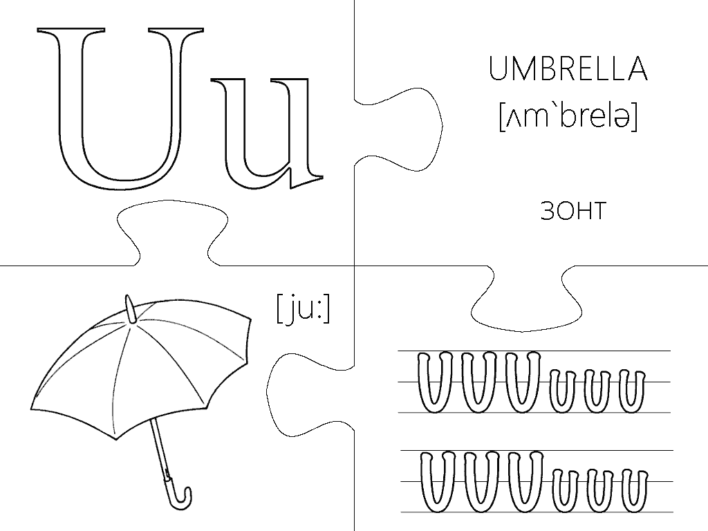 Еще одна версия пазлов, где каждая буква изображена в виде интересной раскраски и занимает целую страницу А4. Вырезание, разукрашивание и складывание всех элементов займет вашего малыша на несколько дней, что позволит хорошо отложить в памяти каждую букву английского алфавита. Пазлы будут полезны не только перед подготовкой ребенка к школе, но также для первоклассников и второклассников в учебных заведениях с углубленным изучением английского языка.
