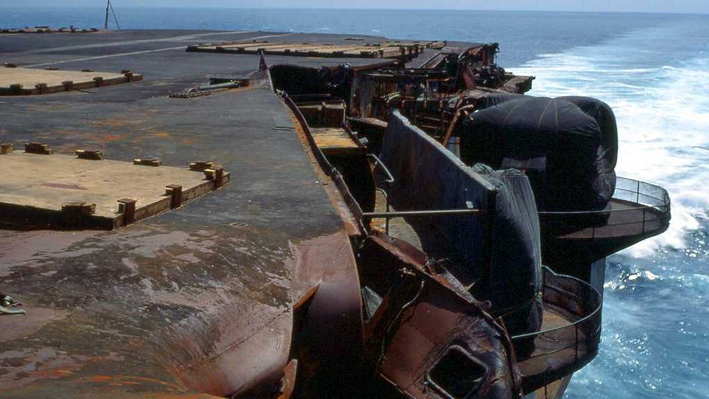 В 1969 году произошло трагическое событие, одна из ракет по неосторожности экипажа взорвалась и врезалась в бак одного из самолетов, стоящих на палубе. В результате катастрофы погибло 27 человек, общий материальный ущерб составил 126 миллионов долларов