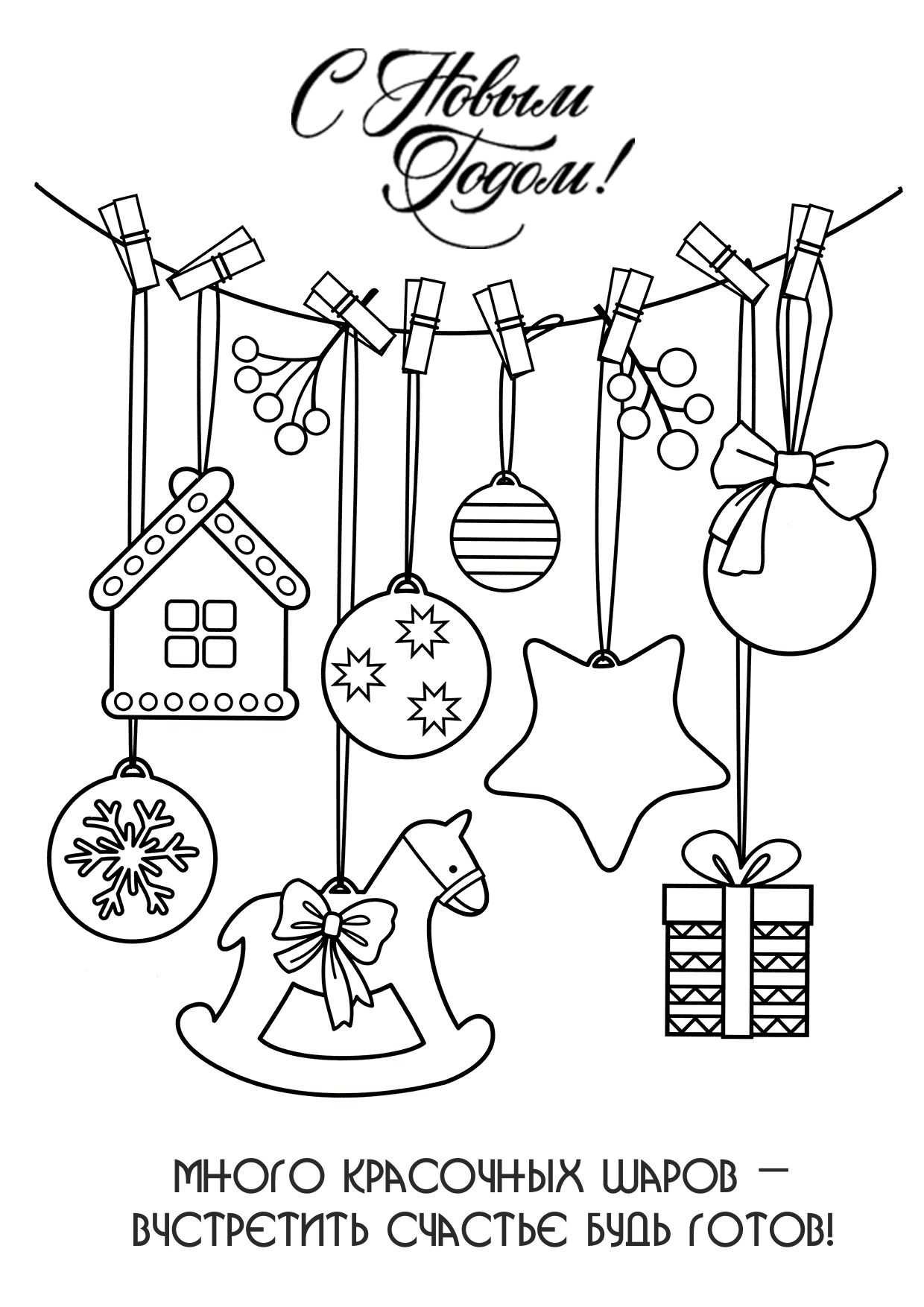 Звездочки, шары, снежинки — Радости твоей пружинки: Новый год добром и лаской Встретишь ты своей раскраской!