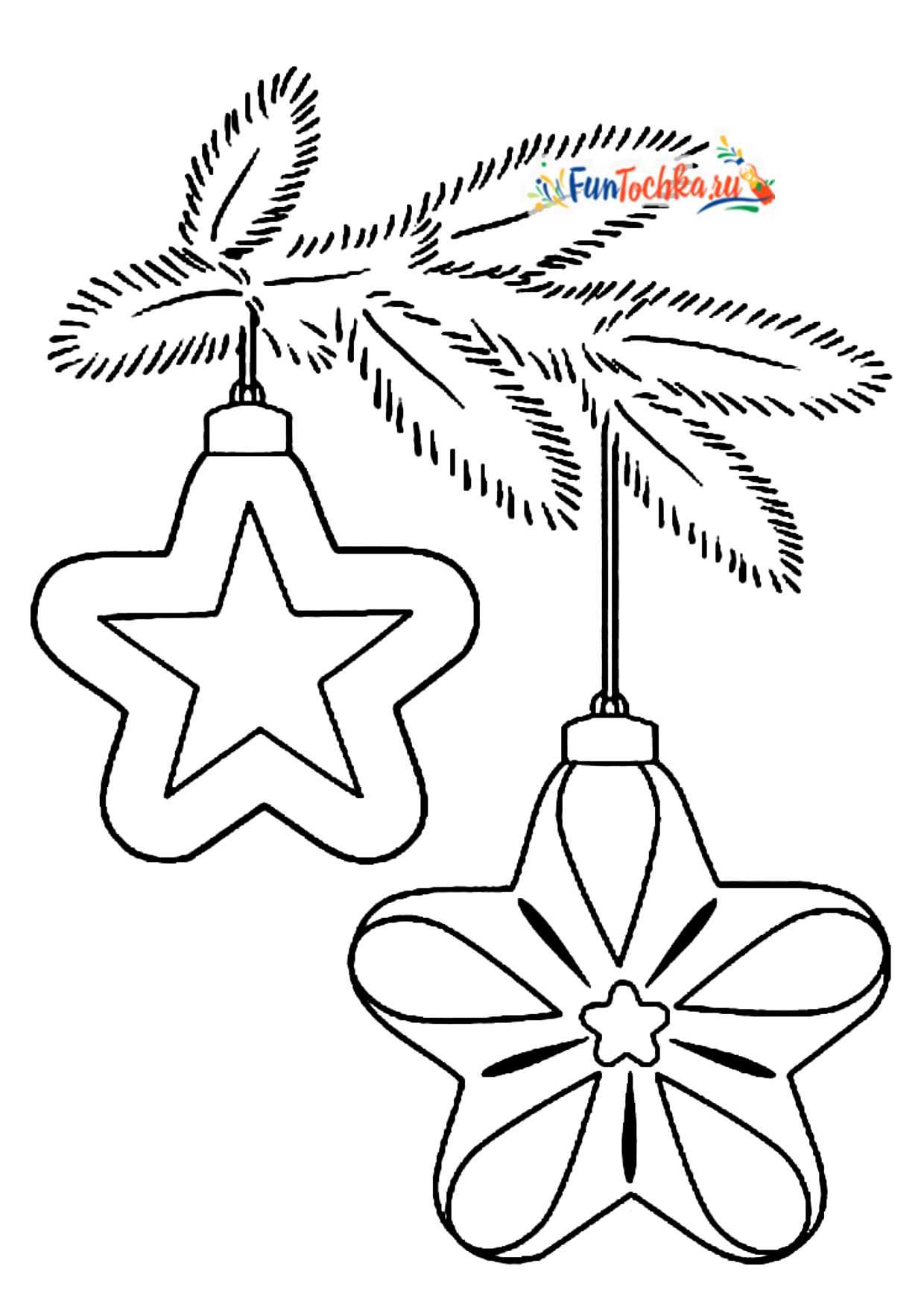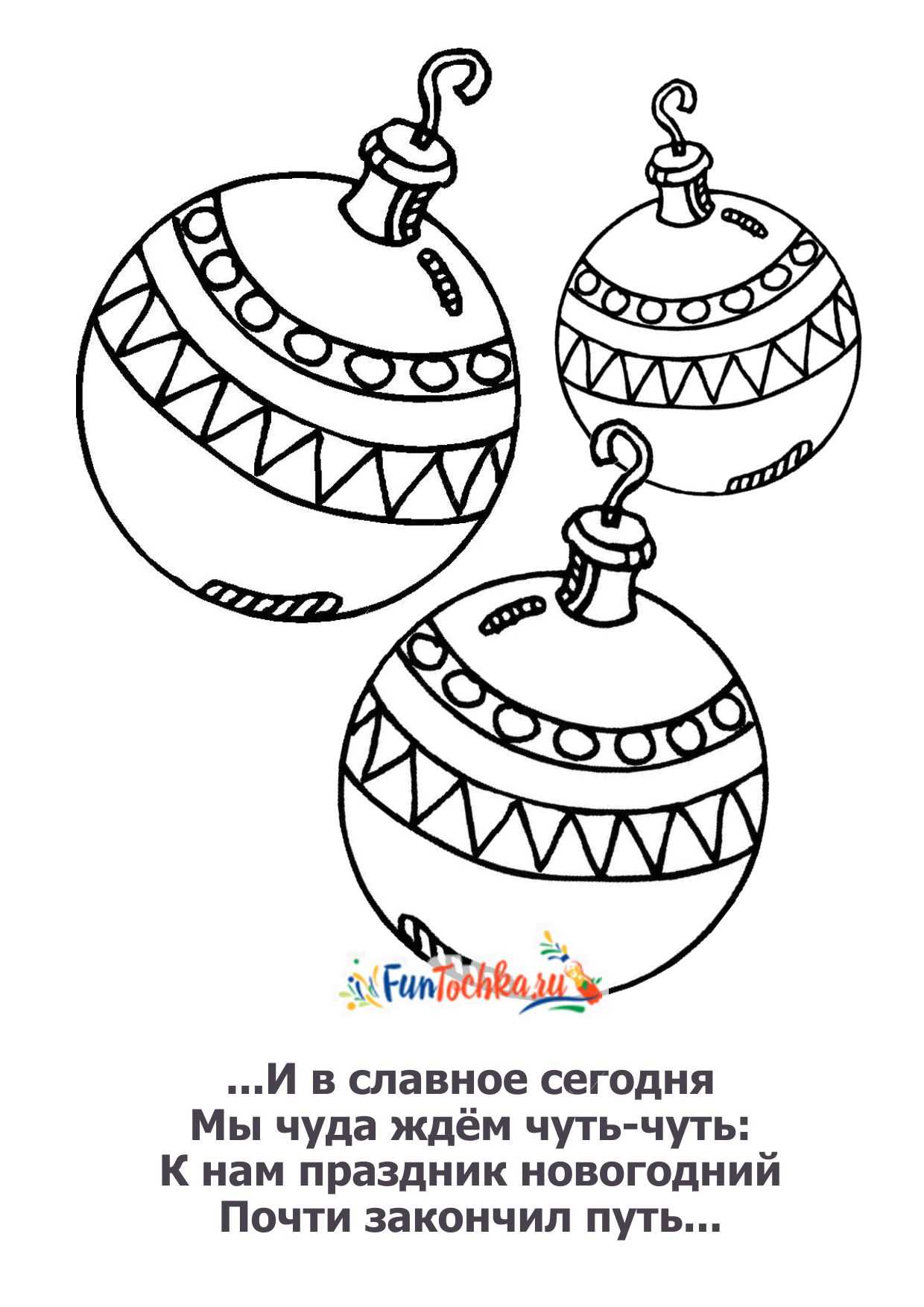 Разные новогодние шары и игрушки на листе А4 — 18 шаблонов