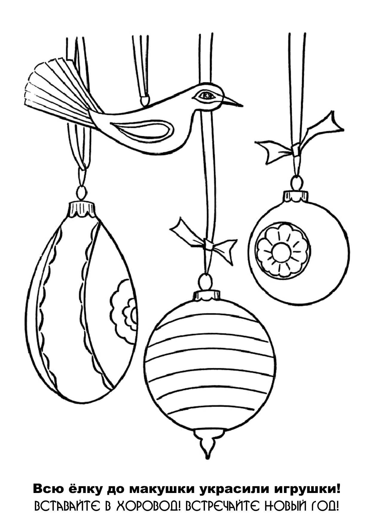 Разукрасьте всей семьей елку из игрушек к празднику. Тщательно закрашивайте каждый узор, чтобы композиция была законченной.