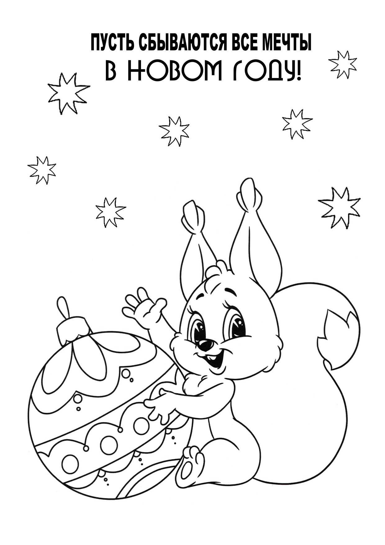 Елка с шарами и волшебные новогодние персонажи — 6 красивых раскрасок