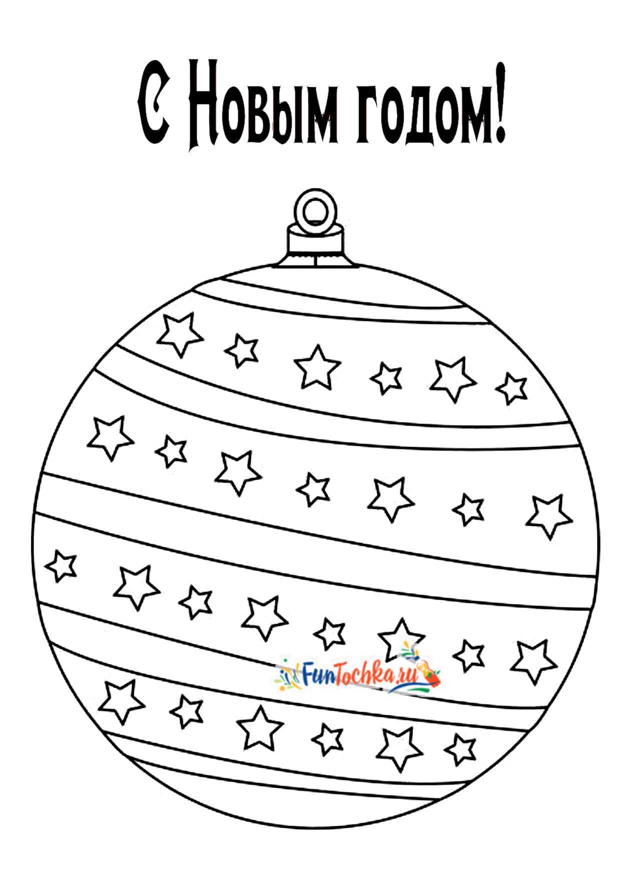 Ребенок переходит на новый уровень мастерства, когда может аккуратно обходится с мелкими элементами в контуре новогоднего шара. В наших бесплатных раскрасках самые волшебные и легко понятные для детей формы — это звезды всех мастей.