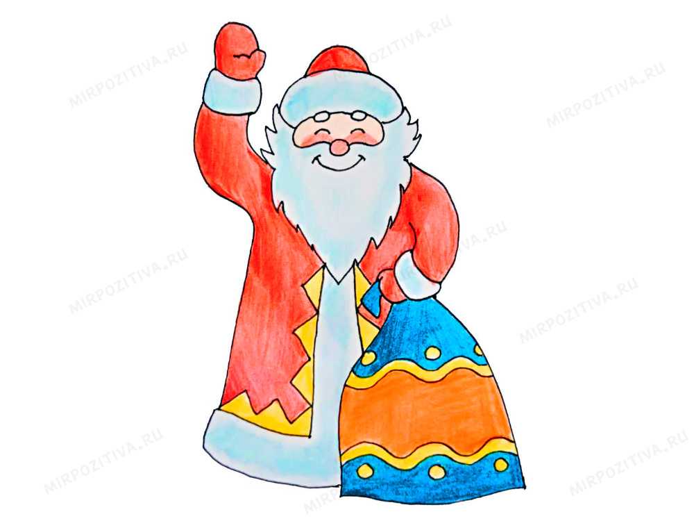 Если использовать цветной фон, изображение будет гораздо интереснее. У нас легко и красиво получился настоящий Дед Мороз, рисунок готов.