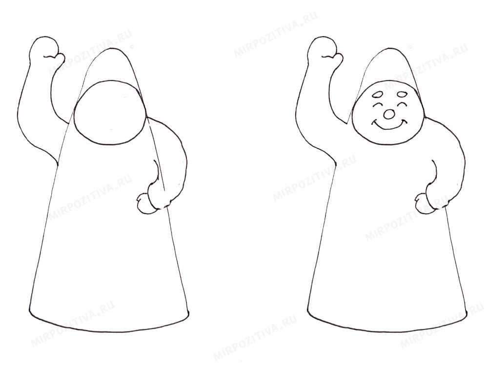 В 1-2 классе легко объяснить учащимся, как нарисовать деда Мороза поэтапно карандашом, чтобы фигура была реалистичной и пропорциональной.
