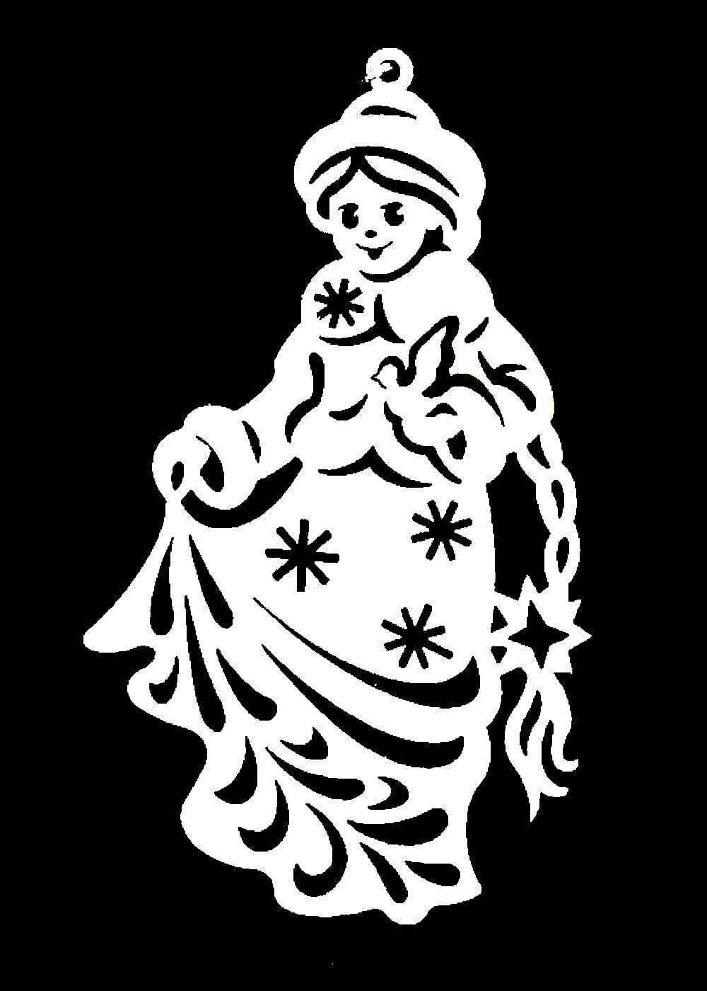 Не менее востребованы вытынанки со Снегурочкой для украшения дома к Новому Году. Стоит отметить, что обычные вырезки из бумаги отличают от вытынанок тем, что вытынанки все-таки изготавливаются в более ажурном виде. Именно вытынанки ценятся как украшение, сделанное своими руками во всех странах и пользуются спросом.