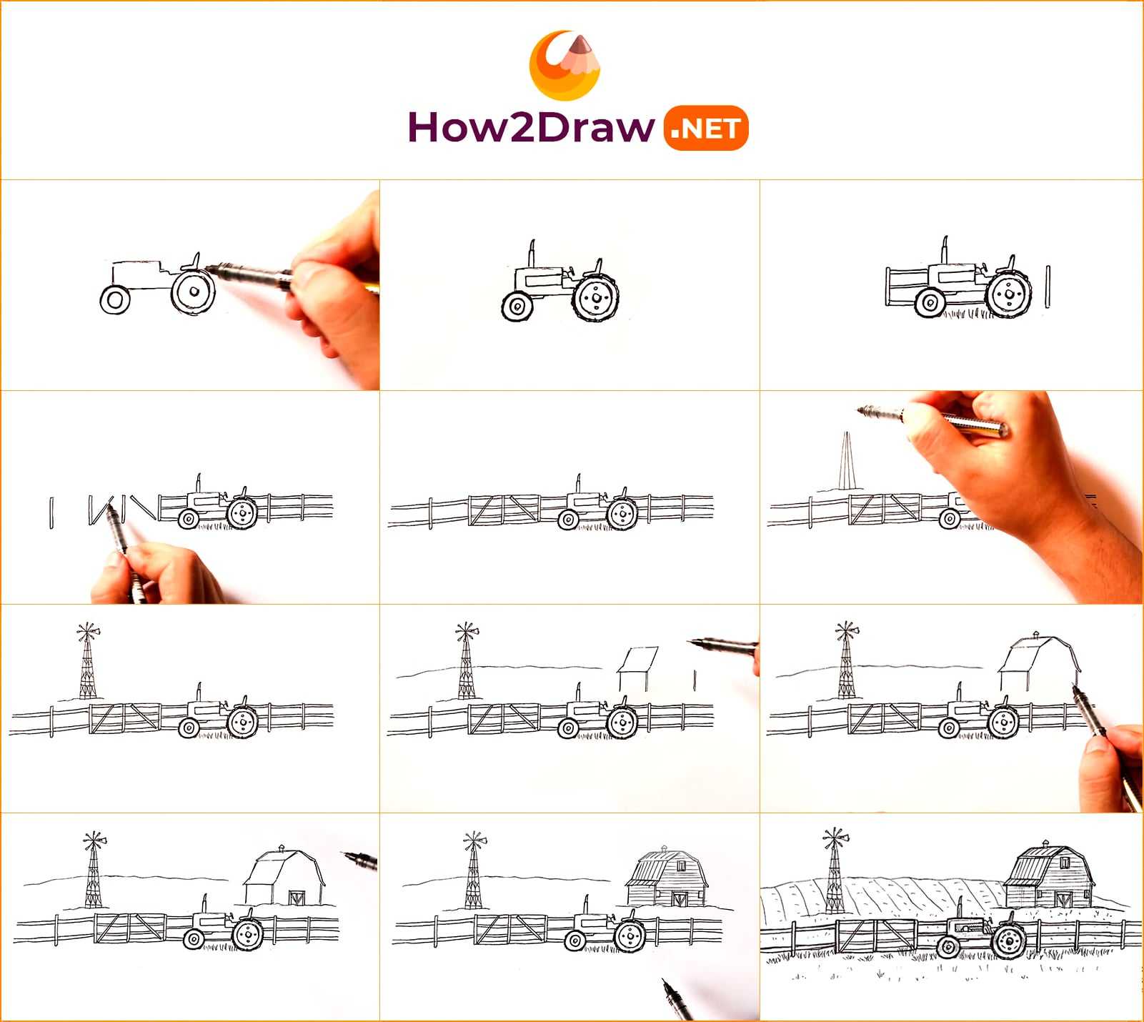 При помощи данного урока вы научитесь рисовать таверну, трактор, поля, используя одну лишь ручку и лист бумаги.