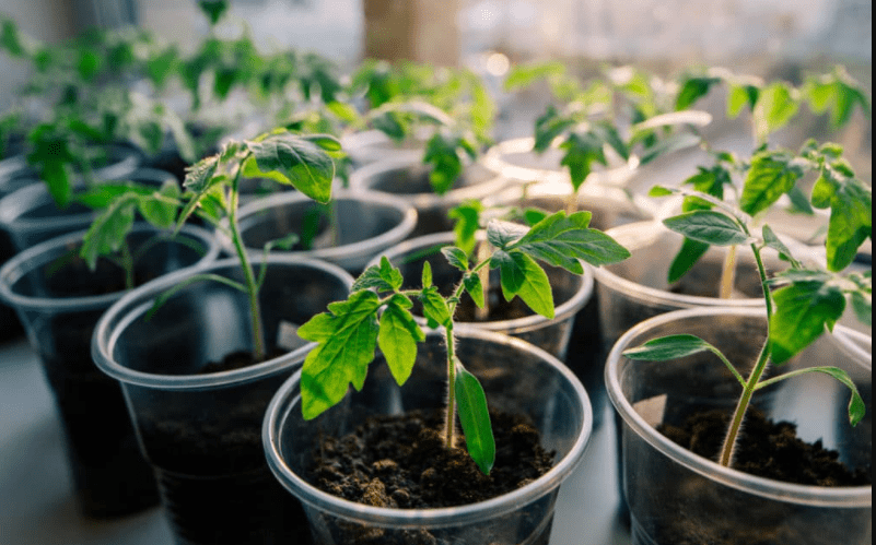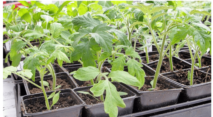 Температура воздуха. Когда прорастут томатные семечки, то температуру снижают до +12-18 °С на 48 часов, чтобы предотвратить вытягивание росточков. Затем ёмкости возвращают для дальнейшего выращивания при +22-23 °С; Орошение. Поливы проводятся тёплой отстоянной водой; Когда появятся 2-4 настоящих листочка, то сеянцы пересаживают из общего контейнера по отдельным горшочкам