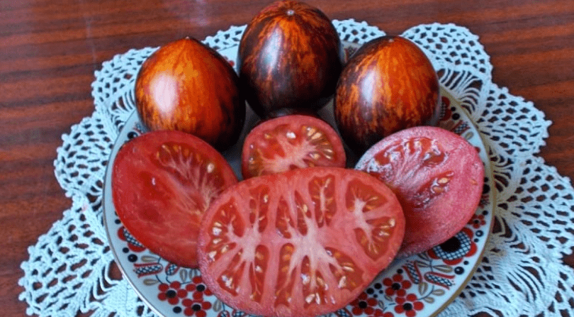 Удивительная расцветка томатной кожицы с ярко-красной мякотью внутри