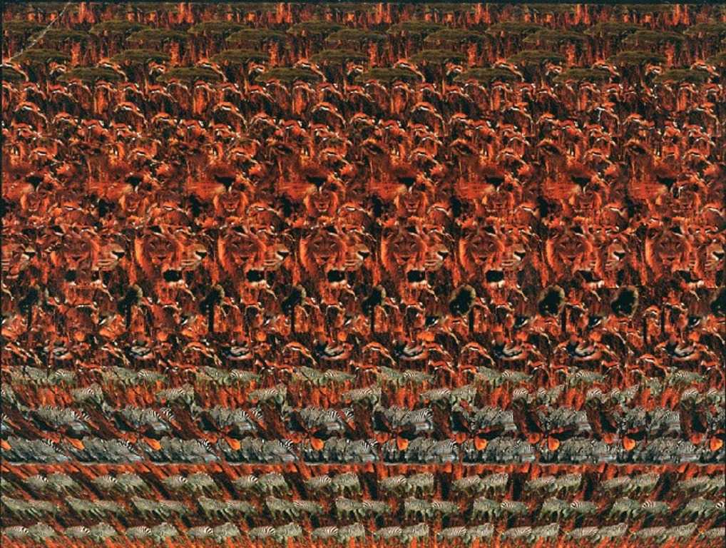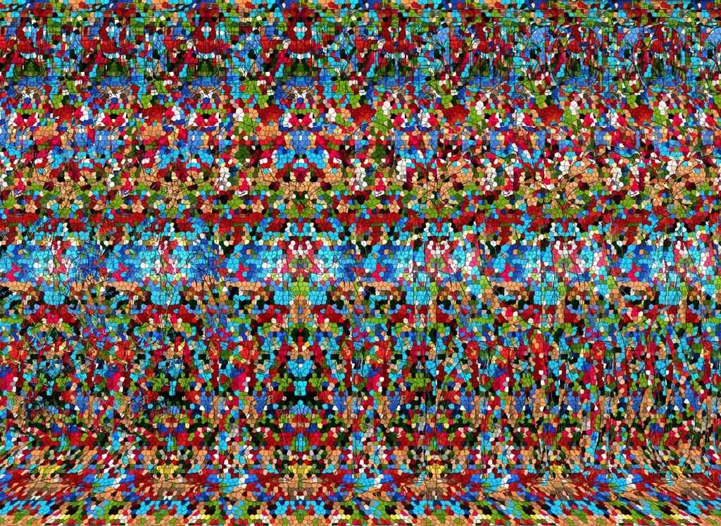 - Сложные для профессионалов. Чтобы увидеть трёхмерный объект на таких картинках, нужно иметь определённый опыт в их разглядывании. Неофит может и вовсе ничего не увидеть на них: перед его глазами останется лишь хитросплетение разных узоров.