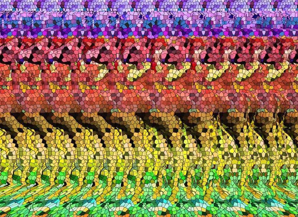 Стереокартинки – это совокупность точек, различных узоров, геометрических фигур и заднего фона, с помощью которых зашифровано трёхмерное изображение. Чтобы его увидеть, нужно сфокусировать на такой картинке взгляд, а затем расслабить его. После этого перед взором человека предстаёт 3D-рисунок.
