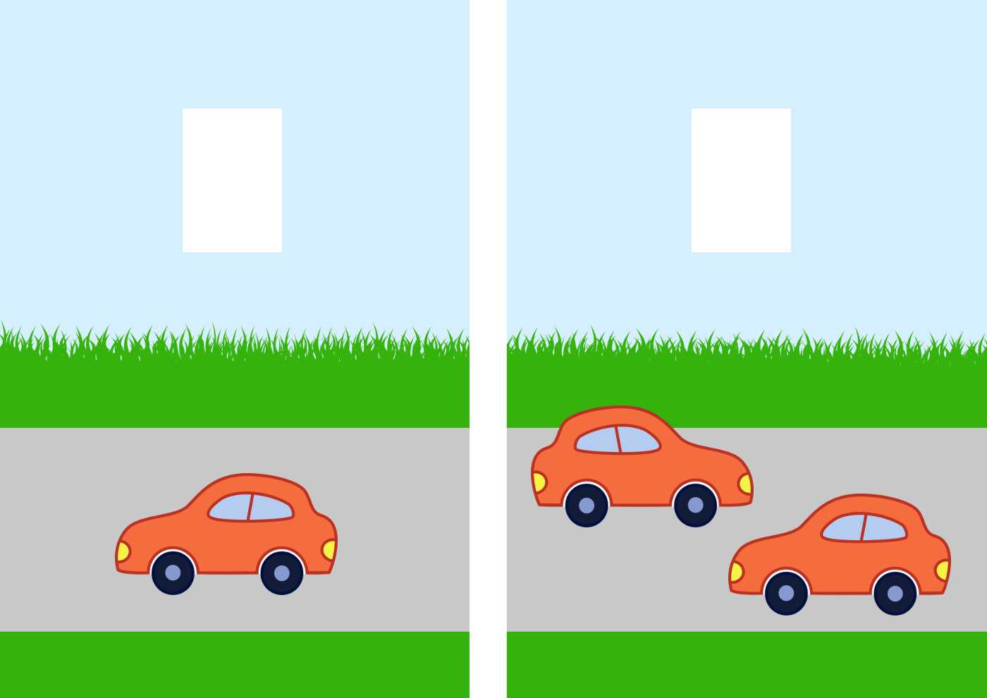 А сколько машин на другой картинке, сосчитайте? Две машины. Найдите цифру «два» и приложите к окошку над двумя машинами. Цифра «два» показывает, что машины две.