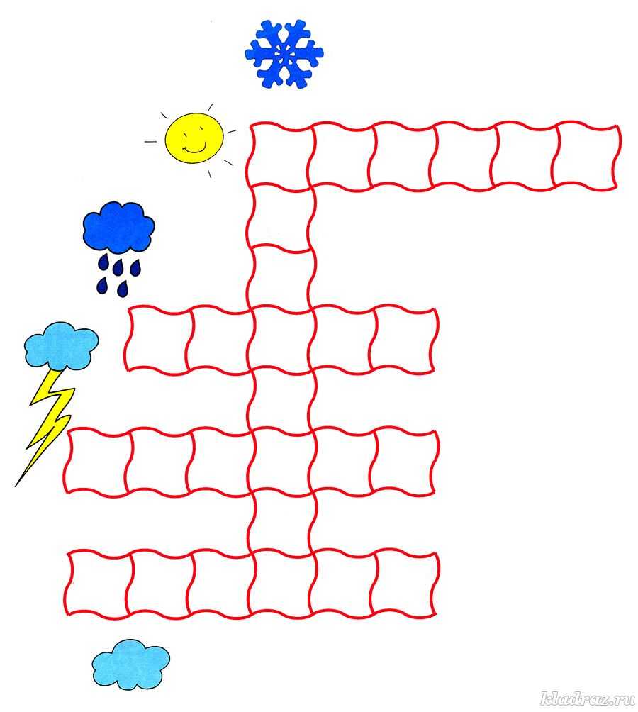 Ответы: солнце, дождь, молния, облако, снежинка.
