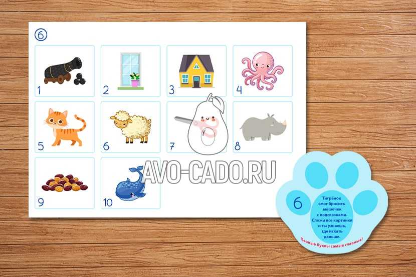 6. Шестой конверт положите в комод. В нем должна быть 6-я лапка и 6-е задание — мешочек с карточками.