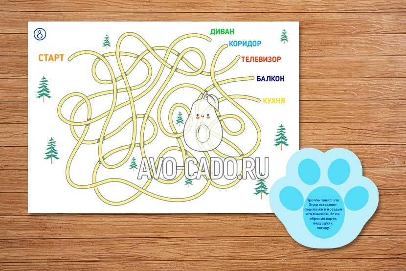 9. Девятый конверт спрячьте в коридоре. Это логово Тролля. В конверте должна быть 9-я лапка, 3 лапы Тролля,