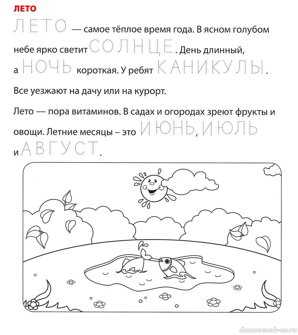 Обведи слова, написанные пунктиром, а потом раскрась картинку.