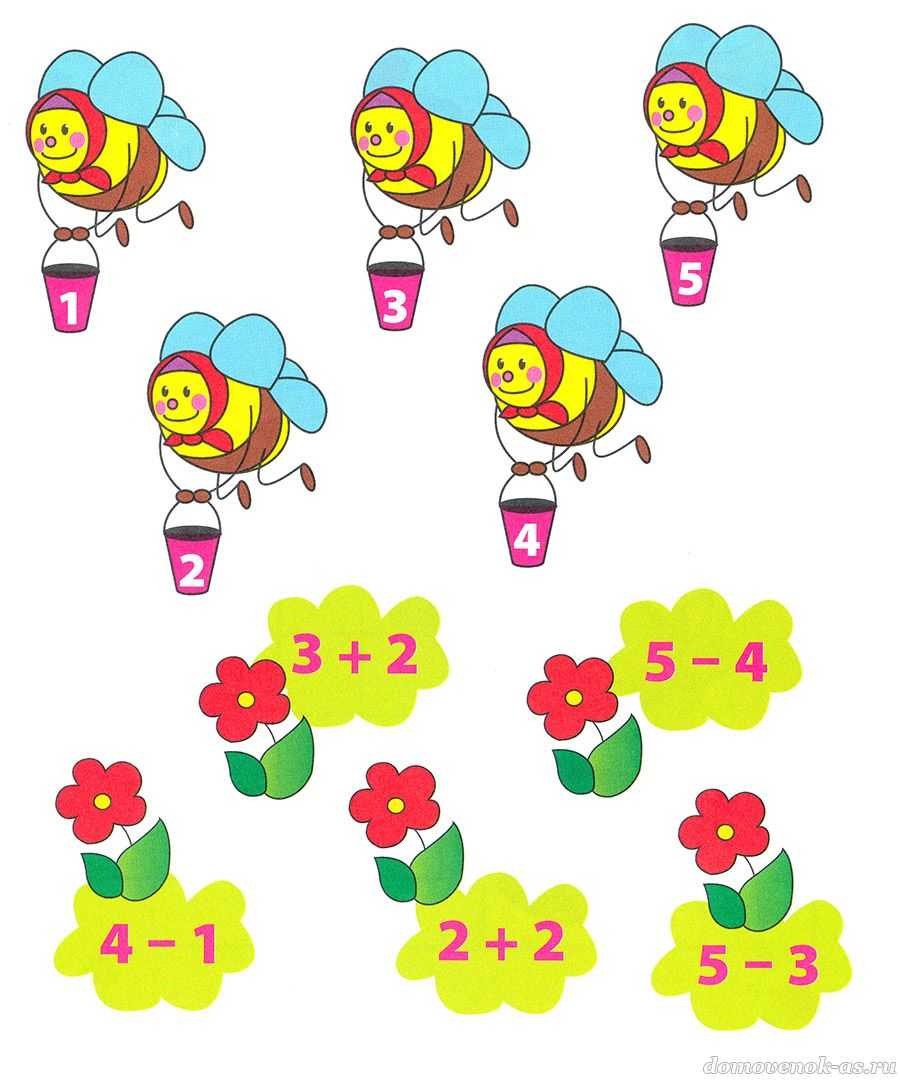 №1. Реши примеры. На какой цветок сядет каждая пчёлка.