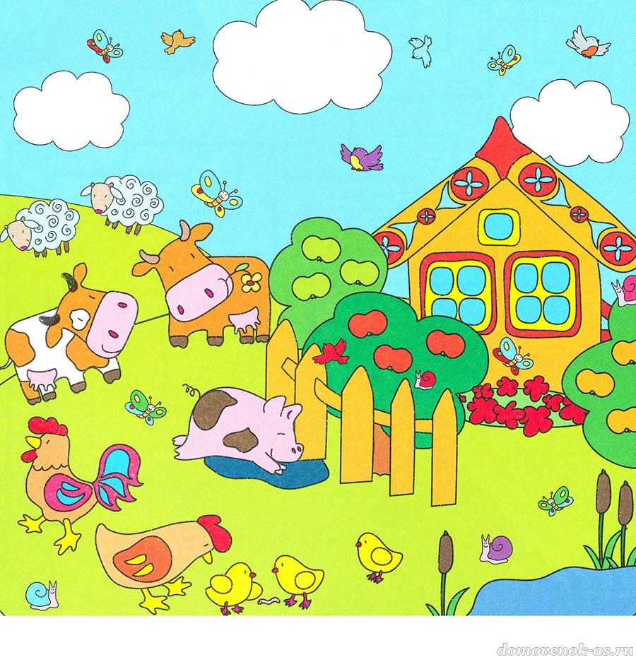 №20. Найди на рисунке 6 бабочек, 5 летящих птичек, 4 улитки.