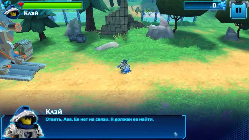 В сюжете Lego Com Nexo Knights на русском придется столкнуться со злым персонажем по имени Джестро, который был ответственен за уничтожение меньших существ. Необходимо победить более крупных и более сложных врагов. Вражеские существа неоднократно бросаются взрывчатку во время битвы. В таких случаях игроки должны коснуться экрана, чтобы убедиться, что Клей выйдет из зоны действия взрывов, и увернувшись, быстро атаковать существо в подходящий момент.