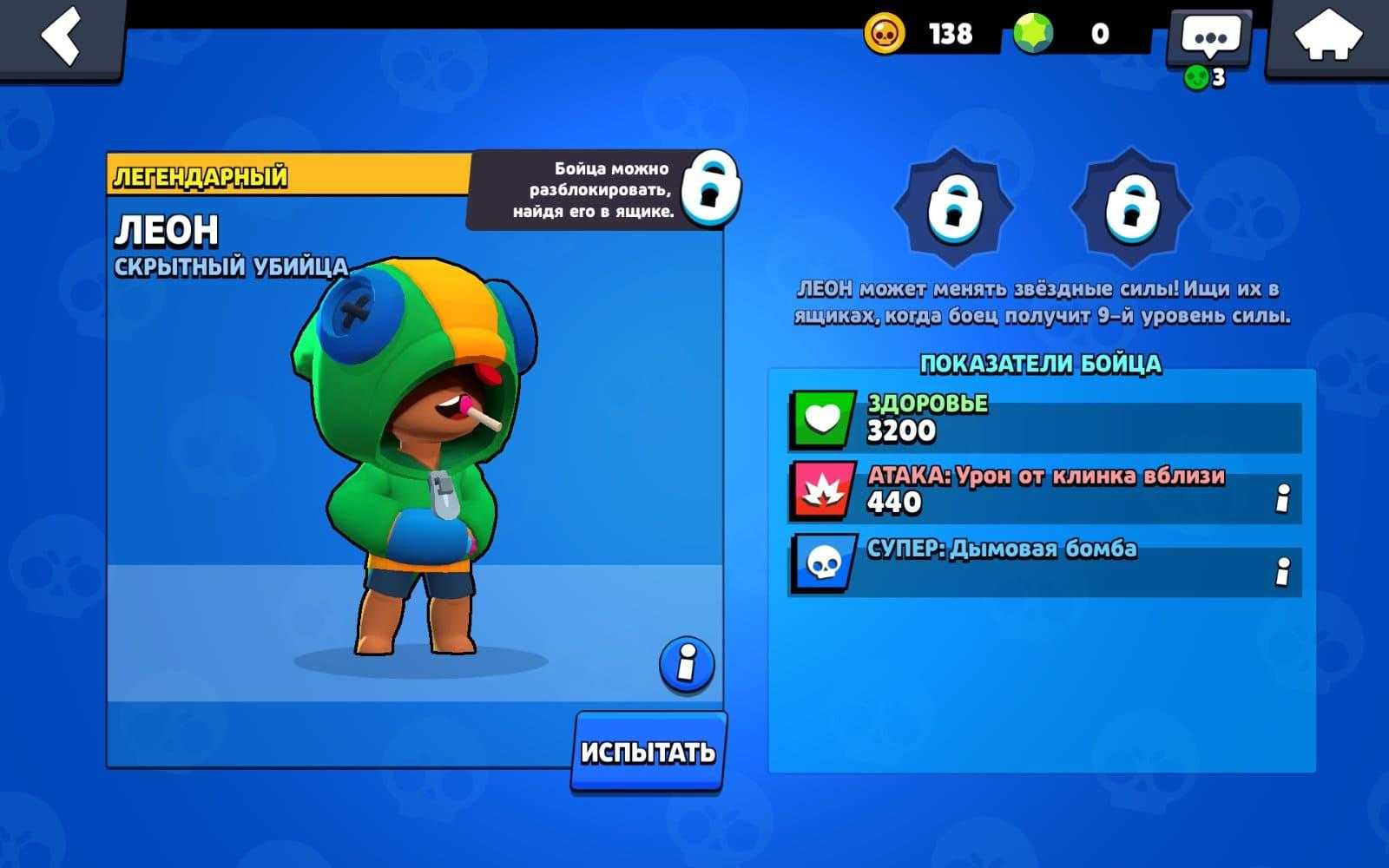 Леон — популярный среди игроков персонаж. Все связано с удачно распределенными параметрами, сильнее всего среди них выделяется скорость — она выше, чем у всех остальных бравлеров, что дает управляющему игроку свободу перемещения по игровому полю.
