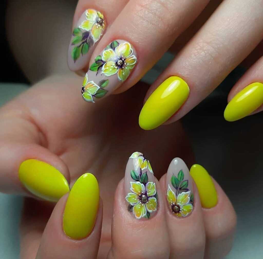 В весеннее время в тренде флористические мотивы. Выбирают нежные пастельные тона, например: сиреневый, нежно-желтый, мятно-зеленый. Неплохо будет смотреться градиент из весенней цветовой гаммы. Посмотрите некоторые идеи для вдохновения на примере фото.