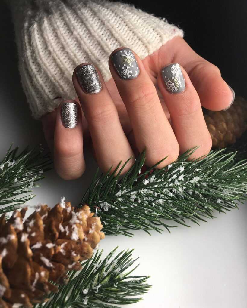 Это время года мы проводим в предвкушении Нового года и сопутствующих ему праздников. Зимние и рождественские мотивы — отличная идея украсить ногти и улучшить свое зимнее настроение. Хорошо смотрятся блестки и фольга, стразы и конфетти, наклейки в виде снежинок. Не скупитесь на фантазию, декорируя свои ноготочки. Кстати, их можно оформить в виде ёлочных игрушек.